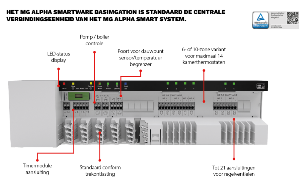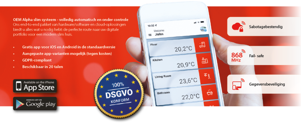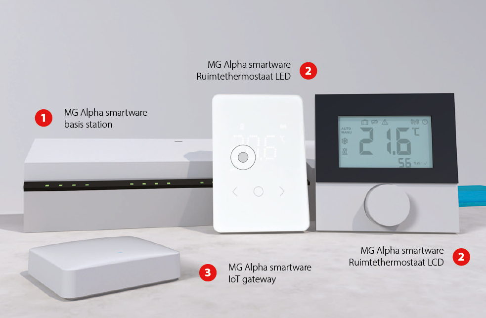Vanwege de vereiste energie-efficiëntie hebben nieuwe vrijstaande woningen meestal vloerverwarmings-systemen. Het MG Alpha smart system voor vloerverwarmingssystemen is de ideale oplossing in deze gevallen en voor oudere systemen die vaak onvoldoende regeling hebben. Het systeem kan ook offline in standalone modus worden gebruikt, maar maakt upgrades naar een cloudgebaseerd smart home systeem op elk gewenst moment mogelijk.